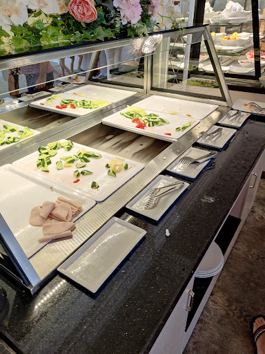 The dining room was rather small compared to how booked the hotel was during our stay + no air...