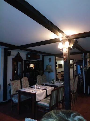 We kindly refer to this hotel as the hunting cabin, as it is made from dark wood and had great smell of stew, decorated with authentic antiques. Once you step in this hotel, the atmosphere is captivating and warm - Old books, lanterns, old irons and more. Then we entered our room on the second floor. One side of the bad was next to the wall, so one of us had to jump over the other in order to get off it while wayching his head. The ceiling had a slop so we had to bend part of the time and watch our heads. Also, the room was not equipped with minibar. On the other hand, the air conditioning worked just fine and the bed was comfi. ||Sitting by the pool, the music was pleasent and the food was nice. However, there are improvements to be made - the pool was dirty and not maintained, cats and dogs wondering around begging for food, no cellular network reception available at all (vodafon). ||We really liked the location- deep in the woods, the gardend are beautifully mainteined and parking is free. All in all it was a pleasent experience and we recommend taking the room without the balcony (standard ceiling).||I would set the pickoks free (and the other caged...