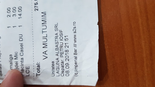 Been to the restaurant mid-April with a British business partner. We agreed that the food looked and tasted AMAZING ! We had sturgeon soup, chicken noodle soup, peasant's potatoes and, for dessert, cottage cheese and raisins pie. The pie was so tasty, fluffy and light that we took away another two portions to eat the following day. Tuica (Romanian plum brandy) was also excellent, with a delicate flavour and, unexpectedly, it was on the house, alongside the starters (fish roe salad). Mona, the lovely girl who served us, was prompt, obliging and very friendly. Many thanks, it has been a memorable...