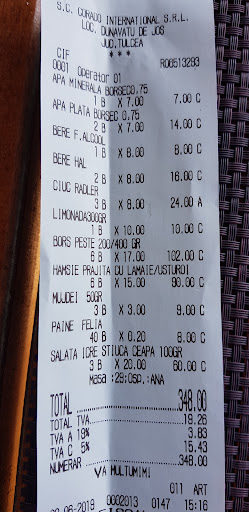 Read moreNu recomand. Mancarea e ok dar nu se merita avand optiuni mai bune la cateva minute distanta. Personalul e neinstruit, chelneritele erau doua tinere care presupun ca lucrau doar petru o vara, dar nimeni nu le a invatat cum sa serveasca, de exemplu sa aduca carnea de peste fiert inainte de supa de peste, sau cum sa se comporte: stateau langa usa si vorbeau destul de tare, iar cand m am uitat la ele au bufnit in ras, deci presupun ca ne barfeau sau ceva- nu mi pot explica. Cand am ajuns acasa si am impartit cina pe familii, deoarece am fost trei familii impreuna si s a platit cu cardul, chitanta am avut aproape 100 de lei in plus, bauturii alcoolice i au fost adaugate ml in plus si de undeva a aparut o cafea in plus, pe care noi nu am comandat o si nici nu am primit o. Nu recomand si nu vreau ca nimeni altcineva sa treaca prin aceasta experienta, nu doresc sa recuperez banii pierduti, vreau doar sa avertizez alte persoane.