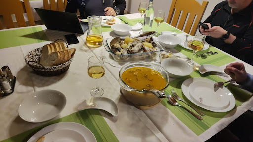 Am avut parte de 3 mese pe zi, cu preparate locale delicioase. Dimineața primeam mic dejun consistent, la prânz ciorbă de sturion și crap prăjit, iar seara plachie de somn sau din nou crap prăjit. Totul a fost gustos, cu mujdei excelent, vișinată și vin local care completau perfect mesele.