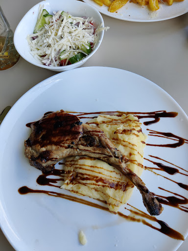 We also went to have dinner at the restaurant, where the view could’ve been very peaceful and beautiful from their terrace, but loud blasting music from their ten installed speakers made normal conversation and resting not easy. When asking if it’s possible to turn it down a bit, we just got a no. As far as we could tell the burgers are good. The one fish dish with mămăliga was not my highlight, fish was basically only fat and bones and there was no taste to the soup and the...