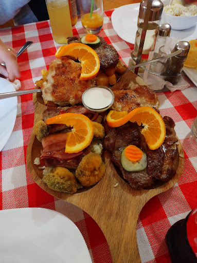 The food is very good tasty, the portions are quite small but tasty and the prices are ok, I've been there 3 times while I was in Praid with my family. The service is very poor. Is slow and the soups are not hot, I had to send back to heat it up even if I asked to be super hot when I ordered it, then they forgot to order my main course while they brought food for everyone else. The waitresses were just running around, they didn't even come to the table to ask if everything is OK, not even once. When I stopped one of the waitresses after like 7min, I told her that we are still waiting for another plate of food the lady said "I'm sure that will come too" and run away, she never returned to give an answer. Then the other waitress I stopped said I will have to wait another 20 min for it to be ready while everyone else already finished. I wrote in the complaint book, which is ridiculous is more like a small pocket notebook. They never apologised for anything, very...