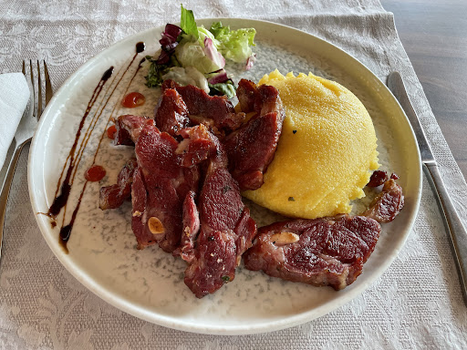 Read moreThe place is situated next to a small river, it has ponds around, parking lot, camping site, outside barracks and much more. Better in the summer I supose. We went this month, with a group of 6 people. Inside is well organised, there were other families, it is child friendly. The food was good, nicely brought and fast for a restaurant. Tried my trick, to see if they have things that they claim in the menü and they do. Big PLUS. The waiter seemed a bit arogant but he was also professional. Probably will come back...