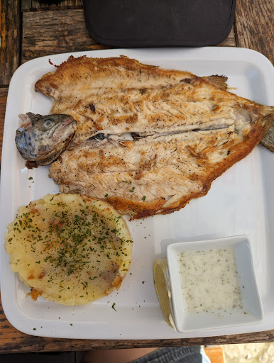 We did not stay here, just had a lunch. We were looking for fish around and this was the closest to the Brancoveanu Monastery. It was entirly empty the moment we arrieved and we left. After, discussing over the matter for a while we decided to give it a try due to my husband's adventurous way of loving and turned around. I did not feel quite comfortable with the idea with having lunch at a place with no guests. But we considered the fact tat we wanted trout and these guys were actually growing and selling fresh trout. It is not a clean place at the inside, no need to mention fhe bathrooms and the stuffy smell everyone, howevere, we ate outside. The service was fast, but hey, we were alone and the fish was actually really well prepared. We opted for grilled and fried trouts with fries and polenta. We were happy with the choice. Also, as we were enjoying our lunch comes kept on coming and people started filling the empty tables. ||Could be tried if out of options. The prices are low for both...