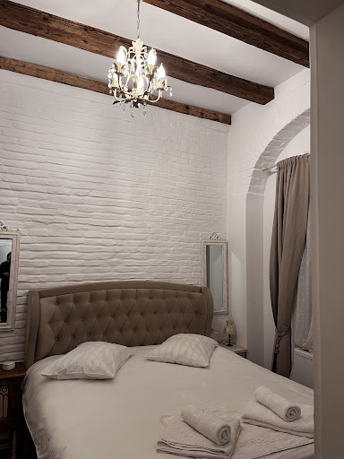 The apartment itself is a true gem, full of character and classical charm, reminiscent of a medieval farytale. Despite its old-world allure, the place is equipped with all modern appliances. The renovation has been thoughtfully done to preserve the original aesthetic, with baroque arches towering overhead and exposed brick setting a timeless tone.