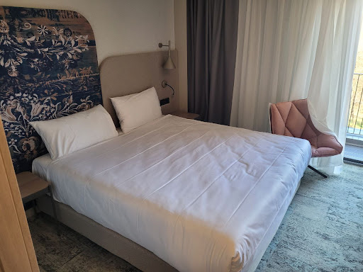 Read moreRelatively new hotel that has not yet found a way to function smoothly.|Reception staff were some really great and some rather bored. |I had received an email to check in online, but this did not work. In the hotel I was told that it never works. Then why send the email? I did invest time. The booking data in the accor app informed me that the swimming pool was temporarily closed. In the hotel, it was open. |Our room had some issues, we found an empty chocolate bar wrapper on the armchair, two lamps were not properly fixed to the wall, the toilet seat was also loose. We reported this upon checking out as one of us was not feeling well and did not want to be disturbed.|The second room was not made every day, no idea why. ||Breakfast was theoretically very nice. In practice, there was not enough staff. No plates, no bowls, no cups, no glasses, 3 out of 4 coffee machines needed servicing and when I asked a young woman about it she showed me the one working (with a queu of 8 guests). Also - who chose the dishes? Smallish cups (150 ml) and glasses without handle, how are tea drinkers supposed to handle their drinks? Apart from the teething problems, nice choice of breakfast food. But if you are understaffed, do not oblige guests to book breakfast, I could not find an option without breakfast and it would relieve...
