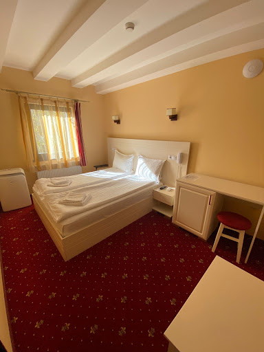 Un hotel de 2* impachetat sub cel mai frumos "ambalaj" care ii da acest parfum de 3**,insa am intampinat pe langa lenjeria murdara si veche(ingalbenită de veche ce era)si probleme in ceea ce priveste apa calda care mergea intre anumite intervale de ore,paturi șubrede noi tapițate (trebuia sa te asezi intr-o anumite pozitie pentru a nu cadea cu patul),murdărie in camere(am gasit in camera pe sub pat si in noptieră sticle de votca si de gin), parchetul care șcârțâia in draci si pusă deasupra lui o mocheta veche si murdară,perdelele care daca le trageai să faci lumină in camera cădeau pe tine,pânze de păianjen la colțurile pereților,camere prost izolate fonic(auzeau pana si vecinii de la parter ce vorbeam cu sotia in camera),pe terasa am avut niste scaune si o masa care erau rupte si puse peste ele o perna care atenuau caderea de pe ele,la restaurant am beneficiat de cea mai oribilă mancare,pe langa ca micul de jun a fost refolosit a doua zi(am avut cascaval întărit ,salam refolosit sub forma unei brioșe si un ardei,niste paine veche si pe ea întinsă icre)am avut si o friptura nefacută la cină cu un pilaf si o salata de muraturi,meniul perfect pentru un parastas. Hotelul se inchidea la ora 22:00 si nu puteai sa-l parasesti asa ca trebuia sa-ti faci veacul in camera(adica sa dormi pentru ca v-am spus sa faci dragoste in pat cu nevasta nu se putea din cauza patului cu care cadeai efectiv,dar si parchetul din lemn care scârțâia si desigur si vecinii care auzeau tot ce miști). Personal amabil care ne-a facut șederea plăcută.Pe final conturez faptul ca nu este un hotel recomandat pentru un grup de persoane sau persoane care nu sunt linistite si vor sa se plimbe in oras dupa ora 22:00 sau sa stea pe terasa la o vorbă.Intr-un cuvant...