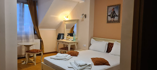 Read moreAm ales acest hotel pentru că a fost singurul care a acceptat plata in avans, dar și pentru că din descriere și recenzii, totul părea minunat. Din păcate, acest hotel este mai mult un motel cu aere de 4 stele, și imi pare rau că am observat atâtea minusuri. Pentru tariful perceput pe cameră, gazdele oferă cameră pentru odihnă. Atât consideră proprietarii că trb. să dea la schimb. Terasa este un loc de trecere în drum spre camere, fără nimic plăcut și atrăgător care să te facă să stai cu plăcere mai mult timp. Spatiul verde este cel mai simplist loc care poate fi văzut, fără mese, flori imbietoare. Locul de servire a mesei este un beci igienizat in care se aduce doar mic-dejun, cu alimente comune si ieftine. Meniul care se găsește in fiecare cameră este făcut doar in scop comercial, nimic din ce scrie acolo neputând fi servit in incinta clădirii. Răspunsul recepționerului este tânguitor, scuzandu-se pentru absența bucătăresei. In realitate, nu există, ținând cont de servirea micului dejun chiar de receptioner! Același receptioner pleacă din receptie să ducă bagajele turiștilor in camere, același receptioner este și barman pe terasă, același receptioner ascultă cu sunetul la maxim ceva interesant ptr. el pe telefon. Serviciile de masă și servire sunt foarte stricte la un hotel de 4 stele, iar aici nu sunt deloc indeplinite, iar recetionerul comunică celor cazați că vor servi mic-dejun de tip siedez doar dacă sunt peste 8 pers. la masă, altfel se aduce in meniu fix cu mezeluri și cașcaval feliate, ou prăjit,câteva măsline, unt+gem și pâine. Camera a fost acceptabilă, aer conditionat ok, patul ok (mai puțin husa cauciucată de protecție a saltelei, care scotea sunete deranjante și a trb. scoasă efectiv). Cel mai bine se vorbi despre baie, cu apa caldă permanent și robineții in stil vintage. Ar fi fost utile cateva suporturi in plus pentru haine. In concluzie, nu recomand acest hotel pentru un sejur. Cel mult pentru o noapte, in caz că nu găsiți altceva. Hotel Coroana, la doi pași mai in față, oferă la un tarif mai mic servicii de restaurant complete și piscină interioară cu o superbă terasă si grădină. De asemenea, recepția și interiorul sunt făcute cu mult bun gust și atrag turiștii natural prin eleganța interioară. Acolo am servit masa și am fost impresionați de diferențele de preț și servicii oferite ale celor două hoteluri...