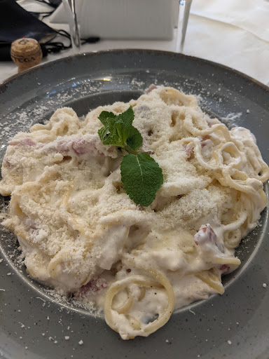 3.Food the breakfast was ok, enough varieties to choose from, pizza and some sweets quite good; presentation was lacking, the food seemed thrown on the platters; breakfast is served in an area that is literally a hallway between the two wings of the hotel; one of the two coffee machines was broken and made a very watery cappuccino, if you used a smaller cup it would even overflow; we told the staff and they said that’s just the way it works; restaurant was literally empty at lunch and dinner; all the chairs were dirty;
