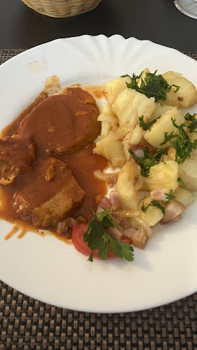 We visited Sinaia briefly for the castles and stayed here as it was a short walk to them. It's a nice building, but the front desk isn't manned, another guest ran off to get someone for us both when we checked in and tried to check out. Restaurant staff double as the front desk staff and are always out back too. Some are less pleasant than others. The room is serviceable, if small, but the bed throw was dirty. The beds were very uncomfortable, I spent the night tossing and turning unfortunately. ||The food wasn't great, and similar prices to other (better) restaurants nearby. Breakfast was included in our room, there was a choice of 4 breakfast options of which all were a bit of an odd mix; we were told if we wanted any changes we would have to pay. ||Overall the hotel was very pretty from the outside, especially in winter. The location was very good both from the train station and the castles. ||It is what it is, a...