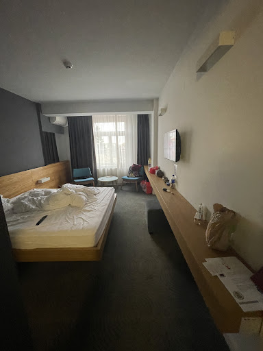 Read moreOn a scale from 1 to 10 we give it a 7 . We liked that it had easy front parking and the room was spacious and modern and clean at the arrival and we also had a gorgeous baby bad that we asked for. We booked it for 2 nights. We took a shower and we went to sleep. The bad things now . 1 the towels had a bad odor and when in touch with water it smelled even worse (like burned tire) , the shower cabin had the water stains from the previous night and they did not change our towels. And for the bed because I have a problem with hairfall the housekeeper did not put an effort to actually clean the bed , I could tell from the hair I found on it , she just...