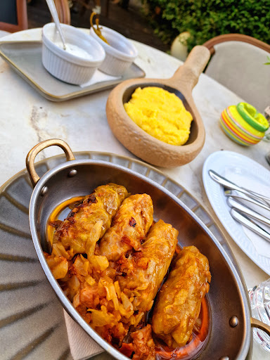 But the best is yet to come: The back yard with parking places for the hotel's guests and behind it, a magical garden! Several tables with tasteful concept and design, birds chirping, nice jazz music and sunset. I served dinner in this amaizing place. The waitress suggested me a big variety of drinks (cocktails, homemade lemonades and great wines). I had one of my favourite dishes, the stuffed cabbages (RO - sarmale / HU - töltött káposzta) And as I also told her, this was better than my mom's! And trust me I tried this dish in several cities and countries!