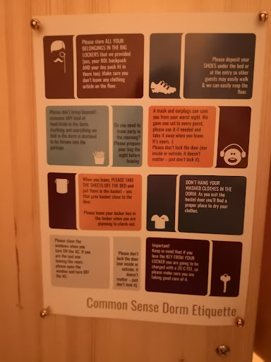 Also, there is a sign at the bottom of the common stairs that seems to say 3rd floor -- but there is no third floor -- and when you get to the first floor, where the hostel is located alongside other apartments, there's no sign to guide you in. I would have left at that point but I stumbled across it and then found the 10 digit entry code they sent me along with all sorts of other instructions.