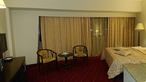 It is hard to call this a 5-star hotel because it really isn't, but that doesn't mean that it isn't a fine place to stay when you visit Tulcea. I took a maxitaxi to Tulcea from Bucharest, and the Esplanada is literally next door to the bus station, so it was an easy decision for me to make. The hotel's rear entrance faces the esplanade, so you can walk down and easily review all of the various fast boats and tour boats before you choose. The front entrance faces the downtown area, so it's a quick walk to restaurants, drugstores, cathedrals, etc. I didn't have a reservation, but the front desk staff was cordial and let me take a look at the room before I committed (Room 616). As other reviewers have mentioned, the bathrooms show a history of flooding, but I was just really careful with the shower when I used it. There wasn't a coffee maker or kettle in my room, but there was a small stocked bar refrigerator. I didn't have a patio, but the windows opened and the view across the esplanade and bay was always interesting. The breakfast buffet (included in my room charge) was adequate. I actually ate dinner there every evening because I was so tired from the days' activities that I just wanted to shower, eat, and go to bed. I am primarily vegetarian, and I loved the Greek Salad so much I had it each time. There is a long menu though with a...
