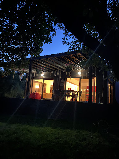 Afara este extraordinar. Un loc minunat de stat la vorbă si pahar, curtea plina de joaca pt cei mici. Cam periculos deck-ul pe alocuri pentru ei. Râușor prin curte, loc de gratar foarte bun.