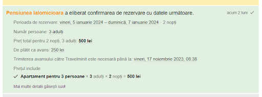 Am pus pozele cu diferentele de pret - Prima poza, e de pe booking cu rezervare tot pentru 3 adulti, tot pentru 2 nopti. A doua a poza e de pe travel mint, unde am facut rezervarea la...