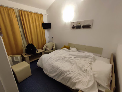 Read morePensiunea este așezată central, și are preturi mici (pentru Brașov) , de aceea și condițiile (conform prețului). Supărător este ca pe booking are un raiting de 8.1 puncte, ceea ce îți creează unele așteptări de unde și dezamăgirile aferente. Realitatea este departe de ceea ce se vede pe booking. Pozele sunt probabil de la inaugurare (și asa, felicitări fotografului) Cred ca 5 din cele 8 puncte de raiting de pe booking sunt datorita doamnelor de la recepție care sunt foarte amabile și drăguțe. În rest, pensiunea este ffff veche pe interior. Mobila, frigiderele, mocheta este de acum 20 de ani. Televizor cu tub 🥴 (dacă mai știți ce este ala), funcționale dar cu o "claritate" de îți lăcrimau ochii. Frigiderele din camere nu au termostat, adică toată mancarea/bautură ce o pui la rece o iei gheață (dacă o mai iei). Mirosurile....vai, mirosul ala de tutun învechit și ieftin, pe toate holurile (pt.ca locul de fumat este pe un balcon mic în capătul holului) de câte ori deschideam ușa la camera venea acel miros care mi-a ținut stomacul strâns toate cele 3 nopți și zile. Ușa camerei nu se închidea, doar cu cheia sta închisă. La bai (fiind mai multe pers am avut mai multe camere asa ca pot vorbi la plural pt ca situația era cam aceeași) cabinele aveau câte o singura ușa din doua (se închidea pe colt). Camerele sunt foarte mici, spațiul foarte limitat. Camerele au ferestre extrem de mici și sus, parca sunt ferestre de bai. În 3 zile s-a ridicat o singura data gunoiul fără a se da cu aspiratorul. De schimbat prosoape nici vorba. Apa de la chiuveta ieșea prin sifonul din pardoseala, geamurile nu se rabatau toate ci doar unele... O, și cireașa de pe tort: internetul merge numai parter și et 1. Noi am fost la 2 😒 În concluzie, condițiile sunt pe măsură bugetului raportat la Brașov (care este un oraș turistic scump și cu obiective foarte scumpe)...
