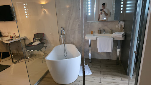Read moreLocația are și câteva plusuri, în schimb are foarte multe minusuri. Voi detalia în cele ce urmeaza: Camera este una primitoare, cu mobila moderna și frumoasa, însă este foarte mica (cel puțin cea în care eu și soțul meu am fost cazati), lumina este una difuza (se poate lectura cu greu ceva), pereții sunt foarte subțiri ceea ce iti da sentimentul ca celelalte persoane cazate locuiesc în aceeași camera cu tine. Patul se vrea a fi unul dublu, însă în realitate sunt doua paturi lipite cu doua saltele. Pilota este una foarte mica pentru doua persoane. De asemenea, camera este una foarte călduroasă, aspect care nu ne-a deranjat, putând ajusta caldura prin intermediul caloriferelor. Baia este foarte frumoasa, cu cabina de dus din sticla și sanitare de calitate. Însă, și aici lumina este la fel de difuza. Personalul întâlnit la recepție este unul foarte amabil. Ni s-a recomandat la receptie, la cererea noastra, un restaurant in apropriere de care am fost foarte incantati. Cu toate acestea, restul personalului ar trebui sa aloce puțin mai multa atenție la anumite aspecte: intorcandu-ne în camera, intr-una din zilele, am găsit usa la camera deschisa. Din fericire, nu a dispărut nimic din camera. Deși s-au schimbat prosoapele și s-a făcut patul zilnic, pe jos nu s-a curățat, rămânând mizerie pana la plecarea noastră din locație. Desi nu am servit micul-dejun la cazare, ni s-a oferit, din partea hotelului, o cafea și un croissant. Locația este una relativ aproape de centru (aproximativ 20 de minute de mers pe jos). Priveliștea este una frumoasa, iar zona este extrem de linistita. Hotelul dispune de o terasa plăcută la etajul 3. Parcarea din curtea interioara a hotelului este extrem de mica și costa 80 de lei pe zi. Însă, se poate parca fie pe străduțele alăturate gratis, fie la câțiva metri de hotel, și aici parcarea fiind cu plata, însă la un...