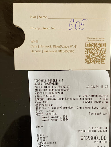 Read moreWe stayed here at River Palace Hotel the second week of June 2024. I will bullet point my review for clarity and simplicity. The good: Bedrooms nice large size, comfortable mattresses and pillows, clean, well maintained daily. Bathroom a good size with adequate lighting, mirrors and good shower pressure. Room cleaners were kind and courteous. We had lunch and dinner a couple of times in the hotel restaurant, all food was excellent, high standard and high quality. Reception staff were kind and helpful. Although they wouldn't change money for my wife - Russian Rouble large notes to smaller notes. All 4 star hotels happily change money at reception. Location was excellent for our needs - As tourists seeing the principle sights of St Petersburg. The not good: Breakfast was what I would regard as unacceptably poor. Firstly, no variety, only 2 types of cooked egg. There should be an egg station manned by a chef in any 4 star hotel. The sausages were not sausages. The croissants were very heavy and stodgy, they should be lightweight and fluffy in texture. One of the worst things is there was no cut fresh fruit selection, like berries, kiwis, melon, etc. Why?? One day, a group of people came to stay at the hotel from Iran, so for a few days only, there was freshly cut grapefruit and oranges, then it stopped when these people departed the hotel. There must be freshly cut selection of fruit every morning in any 4 star hotel! Also bananas, fresh bananas. The breakfast waitresses were very miserable, unable to smile and connect with the hotel guests. Why? Can I recommend the River Palace Hotel? Yes I can. Just avoid breakfast in the...
