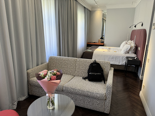 Read moreAl nostro arrivo siamo stati ben accolti dal personale che ci ha invitati ad accettare un drink di benvenuto ed offerto grande disponibilità per un’eventuale organizzazione del programma per i giorni di permanenza in città.|Uno steward ha gentilmente preso in carico le nostre valigie, affiancandoci durante il check-in, per poi accompagnarci nella camera a noi assegnata.|L’ascensore rimane un po’ scomodo in quanto situato a metà rampa di scale del piano superiore e inferiore. Non che fosse complicato salire o scendere a piedi 10/15 scalini (comunque molto bassi), però chi a problemi di motilità dovrebbe tenere in considerazione questa difficoltà.|La camera da noi prenotata era una standard, dunque gli spazi non che fossero immensi, ma comunque sufficienti per rigirarsi senza troppe difficoltà.|Arredamento forse con aspetto un po’ troppo retrò, ma trattasi di una questione puramente estetica, dunque ininfluente.|Presente un bollitore con té e caffè, un minifrigo con bevande alcoliche e non, oltre che altre piccolezze come patatine, frutta secca e preservativi.|Ogni giorno due bottiglie da mezzo litro di acqua in omaggio, e due cioccolatini svizzeri offerti assieme alle previsioni meteo per il giorno successivo.|Peccato la visuale inesistente dal lato in cui era situata la nostra camera al secondo piano (dava sulla triste facciata di un altro palazzo).|Cuscini purtroppo scomodi: uno esteticamente bello gonfio ma che con il peso della testa diventava praticamente appiattito, dunque inesistente; mentre l’altro più consistente, ma dentro troppo duro per garantire un comodo appoggio.|Asciugamani e prodotti da bagno in abbondanza, ciabatte e accappatoi a disposizione, presenza di cassaforte e asse da stiro. L’acqua calda della doccia tardava un po’ ad arrivare, ma poi era piacevolmente calda.|I due luoghi adibiti per la colazione sono siti nelle due ale del cafè e del ristorante dell’hotel, per accedervi abbiamo dovuto attraversare il cortile interno, dunque uscire all’aperto (ricordatevi di portarvi dietro il cappotto per andare a fare colazione). Offerta di cibo dolce/salato abbastanza varia, con una bevanda calda richiesta e portata al tavolo dai camerieri.|La posizione ritengo fosse buona: a pochi passi dalla prospettiva Nevski e dalla fermata della metro; non lontano dalla stazione dei treni.|Una cosa che mi ha lasciata perplessa è stata la pratica di registrazione del visto: il nostro soggiorno lì è durato 4 notti (+ 3 giorni a Mosca) e sapevo non vi fosse l’obbligo di registrazione per soggiorni non superiori a 7 giorni lavorativi (dunque sabato e domenica esclusi). Esso invece è stato fatto e sono stati necessari 600 rubli di commissione, mentre l’hotel di Mosca -sempre ammesso lo abbia fatto vista la non obbligatorietà -, non ci ha chiesto alcun compenso.||Hotel molto valido, pulito ed accogliente, con una buona posizione e con personale estremamente gentile e pronto a soddisfare ogni...