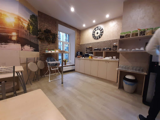 Read moreЗаселение очень быстро. Виктория встретила приветливо, всё рассказала, объяснила. В отеле тихо, спокойно. В буфете/кухне есть кофемашина (мне не очень понравился кофе, но это на любителя. Добавила сахара, молочка и всё нормально), чайник, несколько видов чая Гринфилд, растворимый кофе, сахар, молоко, ваза с конфетками. Чашки, стакана, бокалы для вина - всё есть. На кухне плита, сковородки, сотейники, кастрюли, тëрка, ножи, лопатки и т. п. вплоть до штопора)... То есть можно что-то приготовить. Так же есть растительное масло, приправы. Ещё кукурузные хлопья, шоколадные шарики и, как уже говорилось, молоко. Всё это большой плюс для отеля! Виктория и Яна очень приятные: любой вопрос решался тут же, всегда идут навстречу, готовы помочь. Спасибо вам большое. Мы жили ещё выше от стойки администратора - на этаже в коридоре кулер и гладильная доска. У нас окна выходили на проспект - при открытом окне шум не мешал, а если закрыть, то практически тихо. В 12 выехали из номера и нам разрешили на прощание посидеть попить чайку - очень мило))) Я чуть-чуть попридираюсь) У нас в номере не очень удобно стояли кровати и стол, т. е. между ними узенький проход и не очень удобно. Ещё темновато в номере чтобы накраситься) В коридорах да, есть пятна на покрытии (как писали в отзывах), окна прям давно не мылись. Мне интересно кто убирает номера и места общего пользования? Если Яна и Виктория всё это делают, то им памятник нужно ставить! Если есть уборщики/горничные, то это уже девушкам легче! Отдельный разговор про парадную... Грязновато. И ещё пожелание для отеля - просто необходима вывеска у входа (на картах виду, что до ремонта фасада она была) и у домофона тоже повесить бы название отеля. Но в целом нам понравилось и расположение отеля, и оформление номеров, стоимость, и приветливый персонал (ещё раз спасибо...