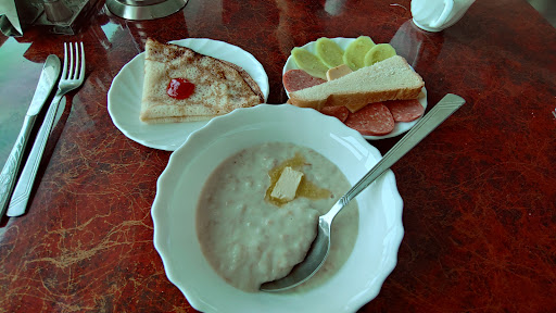 Read morePositive: location is perfect in the center of village, rooms are spacious and simple. Good view from the restaurant which breakfast is served. Helpful staff at Russian level you can expect. Price I paid was reasonable.||Negative side: The common area was very cold, the room as well however an additional electrical heater was placed which helped. It is out dated and doesn't give you feeling of a clean hotel. The view of the room toward back yard was like looking to dirty car repair workshop and I surprised why not offering the best view when hotel is...