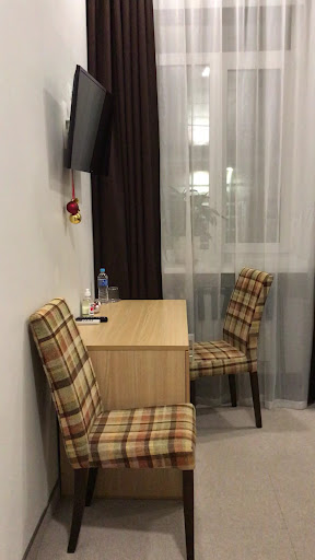 Read moreLiterally a mini hotel, 10 rooms of good sizes, located across from the Moskovsky railway station and metro station. We arrived at midnight from Tallinn on the Baltiski Express train so we were very pleased to only have to walk a few hundred metres to find it. A single door with buzzer is the entrance, and the hotel is located on the first floor, so you have to carry your cases etc up, as there is no lift. Not a problem for us.|It is very quiet, well insulated, with air-conditioning and fantastic rain shower ensuite (at least in room 10).|Very friendly staff, with good English.|You book breakfast the night before, easily done on the app on the iPad at reception. Breakfast is good and plentiful.|Room has a fridge/minibar, free WiFi, and blinds to shut out the light..,the curtains are really only for decoration.|In summary a convenient, great value hotel close to transportation links and good places to eat. We will...