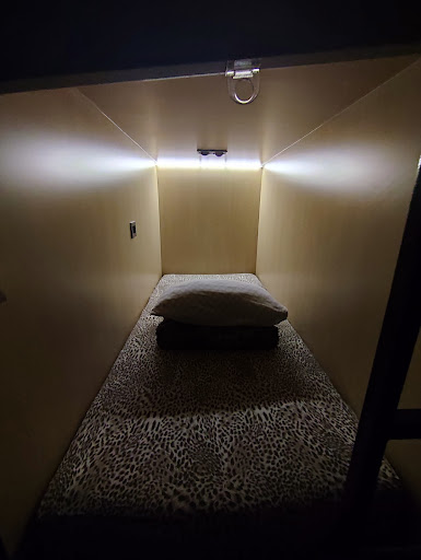 Длительность проживания пол месяца. Опыт проживания в разных хостелах, поэтому объективно и максимально подробно постараюсь изложить все плюсы, минусы и нюансы оного.||ПЛЮСЫ:||Их много и они довольно существенные и весомые.||- РАСПОЛОЖЕНИЕ. Центр города, недалеко две станции метро, Невский проспект и все основные достопримечательности в пешей доступности.||- ЦЕНА. Была в не высокий сезон. И цена через бронирование "Островок" была около 420 руб. в сутки в женском номере.||- Капсульный тип проживания. КАПСУЛЫ чистые, большие, просторные, постельное белье хорошее, чистое, полотенца (все выдается бесплатно) меняется раз в неделю по запросу. В комнатах по большому счету тихо и спокойно, чисто и соблюдается порядок. На подоконники, батареи, шкафчики ничего нельзя класть, иначе сотрудники заберут (было такое).||- Ценные вещи можно хранить в ШКАФЧИКЕ в комнате, который на КОДОВОМ ЭЛЕКТРОННОМ ЗАМКЕ. Код вводится в планшете, закрепленном на подоконнике. Плюс в том, что не нужно везде носить с собой ключик и бояться его забыть или потерять.||- В капсулах НЕ ДУШНО. Абсолютно. Даже, наоборот, но об этом ниже. Могу предположить, что жалобы на духоту в капсулах в др. отзывах именно на втором ярусе, т.к. теплому воздуху свойственно подниматься вверх.||- В общих комнатах ЧИСТО. Уборщица постоянно убирается. Несколько раз моет в комнатах полы за день. В туалетах всегда есть бумага и бумажные полотенца. Всего 4 отдельных туалета (общие для всех).||- Прекрасный ВИД С ОКНА. С одной стороны на Казанский собор и ул. Садовая-Ломоносова, с другой - на Апраксин двор (рынок).||- При входе в хостел нужно разуваться и ходить В ТАПОЧКАХ или носках. Никакой обуви, пыли и грязи в комнатах и общих зонах нет. Одежда тоже вещается при входе на большую вешалку на плечики.||- Комната для хранения БАГАЖА. Но она не закрывается, всегда открыта и хранить там ценные вещи я бы не советовала. Но для крупногабаритных вещей - отличное решение.||- КУРИЛКА для желающих здесь же на этаже, рядом со входом в хостел. Так что не придется бегать на улицу или далеко ходить.||- Стиральная машина за отдельную плату в 150 р., там же есть сушилки и гладильная доска с утюгом, два фена. Все в одном месте, в комнате с умывальниками и душевыми комнатами. ВСЁ НА ОДНОМ ЭТАЖЕ, в одном периметре, что очень удобно.||- Часто приходит то ли владелец, то ли управляющий, делает проверку и ОБХОД. Осматривает капсулы, следит за состоянием. Админы тоже каждое утро делают обход и фиксируют на фото порядок в комнатах.||- Отличная ЗОНА ОТДЫХА с диванами, столами, розетками рядом с ресепшен.||- ВХОД в сам хостел с улицы Садовой. Нет никакого двора, ворот и подворотен. Просто железная черная дверь, левее магазина "Сударушка". Ближе к улице Ломоносова. Эта информация для тех, кто жалуется и истерит, что не может найти вход, якобы потому что нет вывески. Но это не минус и не проблема, если иметь смекалку, сноровку и быть внимательнее, а не уповать только на вывески.||- Есть АВТОМАТ с кофе и еще один автомат с различными перекусами (едой) в общей зоне.||- Заходить и выходить можно В ЛЮБОЕ ВРЕМЯ. Входная дверь тоже на кодовом замке, поэтому никаких ключей опять же носить с собой не нужно. ООООчень удобно! Подъезд чистый, безопасный.||- В день отъезда нужно освободить капсулу и шкафчик до 12:00, но можно хранить вещи в багажной комнате и посидеть до вечера в общей зоне отдых