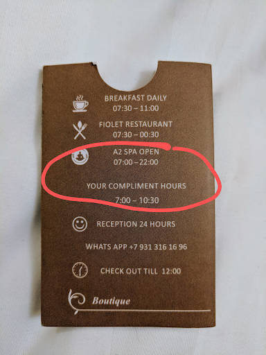 Read moreI loved the Rossi Hotel and the location is perfect for exploring St. Petersburg. Coffee always available (cappucino!) in the lobby, and the library -with cookies - from 5-8 pm. Knowledge and friendliness of front desk staff and housekeeping is a plus. I must give special recognition to Vitaly, who helped turn off the heat in my very hot room, and assisted with other requests throughout my stay. I walked the halls to see the art on display - a lovely gallery everywhere! A few "less than perfect" aspects: the library is a quiet, place but the lighting is very bad if you plan to read there. I was very disappointed in the restaurant (I know it is a separate business) but the menu is limited and I had to venture out to find more variety and food to my liking. I'd like to see a different restaurant entirely. Bathtub in my room was hard to get into - need railing on wall to assist older guests. Also lighting in bathroom (room 508) is VERY dark. A makeup mirror on the wall might help. If I return I would definitely...