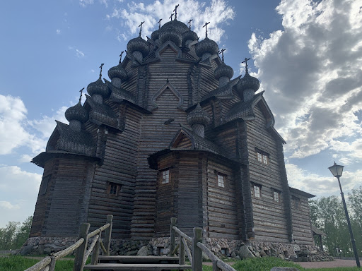Усадьба «Богословка». Недалеко от Санкт-Петербурга в Невском лесопарке Ленинградской области находится уникальное место - Этнографический парк деревянного зодчества Северо-Запада России «Усадьба «Богословка»». В состав этнопарка входят: колокольня, часовня Спаса Нерукотворного, дом-трапезная с русской печью, дом купца Костина, большой хозяйственный двор с кузницей и каретным сараем, ограда погоста и др. Церковь во имя Покрова Пресвятой Богородицы — действующий православный храм. Он является воссозданной копией Покровской церкви постройки 1708 г., находившейся до 1963 г. в Вытегорском погосте в Анхимове. Проект восстановления был разработан Александром Ополовниковым сразу после гибели храма по обмерам, произведённым им в 1956 г. Однако на прежнем месте храм так и не был построен. В 2003 г. на месте воссоздания храма был установлен поклонный крест. В этот день была забита первая свая в фундамент будущего храма, и началась заливка фундамента. Торжественная закладка храма состоялась в октябре 2005 года митрополитом Владимиром. В основание фундамента были заложены камни из фундамента сгоревшей Покровской церкви Вытегорского погоста. Работы по заготовке леса и вырубке основного массива стен были начаты в пригороде Петрозаводска. Там же изготавливались купола и лемех церкви. По достижении 18-го венца сруба храма в апреле 2005 г. сруб был перевезён в Невский лесопарк, где были закончены работы по строительству фундамента. Венцы были доставлены на строительную площадку в мае 2005 г. В 2019 г. храмовый комплекс получил статус...