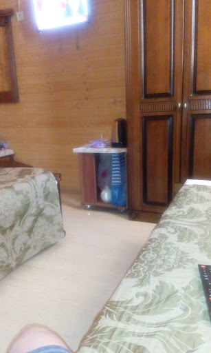 Ездили в этот гостевой дом семьей состоящей из Мамы, Папы, Бабушки и трех деток в августе на 14 дней. ||||Нас встретили на вокзале, довезли прямо до дверей гостевого дома, не смотря на то, что он находится на пешеходной линии. (При отъезде пришлось нести вещи до парковки, а она не близко, но сотрудники помогли.) ||||Дом: ||||Выделили нам 2 номера на втором этаже, Окна номеров выходили на пешеходную улицу с видом на Дино Парк.||Один Зх местный с двухспальной и односпальной кроватью, кондиционером, телевизором и собственной ванной комнатой, и Второй - 4х местный номер с двухспальной кроватью и двухъярусной кроватью, так же кондиционером, телевизором и собственной ванной комнатой. ||Уборка и смена белья по требованию. Можно пользоваться инвентарем для самостоятельной уборки если необходимо. Фен, Утюг в номере отсутствует, но можно попросить и вам его дадут в пользование. Можно попросить постирать белье за доп. плату (100р. загрузка). ||В 3х местном номере были проблемы с кондиционером и канализацией, кондиционер не охлаждал, а из ванной был неприятный запах. Завхоз пытался как то это все починить, но безрезультатно. На просьбы нас переселить откликнулись, но за 2 дня до нашего отъезда :) Сославшись на полную занятость.||||(Стоит сказать, что хозяева за причиненные неудобства угостили нас ужином)||||Номер в который нас переселили 2х местный, и нам поставили раскладушку (очень не удобная, подойдет разве, что легкому маленькому ребенку), ванная комната с заниженным потолком из за ската крыши, поэтому стоя в душевой ваша голова торчит из за ее стенок, и душевую лейку нужно держать руками, вешать ее не на что. Кондей был таким же как и в том номере, но работал немного лучше. Вид из номера на море, это и плюс и минус. Плюс в том, что вид красивый, менее слышно музыку отовсюду, ночью можно открыть окно, минус то, что очень сильно нагревается комната, хоть окна и тонированные. ||На первом этаже, в другом крыле так же есть номера, попроще без окон на улицу (окна под потолком, выходят на столовую), с окнами на боковой пляж (не открываются) и окнами на море. |||| ||Еда: ||||Своя столовая (работает до 22:00 и бар. В столовой не плохо готовят, на завтрак есть каши, яйцо вареное, сосиски, выпечка, запеканка, сырники. На обед тоже есть выбор из горячего и супов, но минус в том, что как утром приготовили, выставили на прилавок, так и стоит весь день, не прикрыто и без холодильников, в холодильниках только салаты. Но так в общем то во всех столовках там, как не печально. ||В баре готовят вкусно шашлык, люля кебаб, овощи и картофель на мангале. ||Из минусов, очень громко играет музыка, и это в Анапе я так понимаю нормально :) Тихого и спокойного отдыха - поискать. ||||Пляж. ||||На пляж можно выйти через столовую по деревянной дорожке или обойдя его с торца. Пляж песчаный, широкий, лежаками до самого моря не заставлен (в отличии от городского) это плюс, но навесы и зонты в прокат есть (50р час, 200р день). Странно, но наш кусочек пляжа, был наименее загружен людьми, но это конечно же плюс.||В августе море цвело, когда только приехали цвело терпимо, но после шторма было очень много водорослей, даже зайти не возможно было. Наш кусочек пляжа пытался чистить трактор, ушло у него на это дня 4 или 5ть. Но остальной пляж вообще ни кто не чистил, так эти водоросли и лежали, воняли перегнивая. ||Мы прыгали с пирса, там где водичка чистая (пра