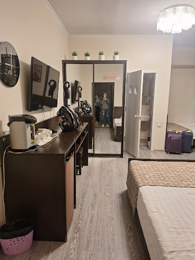 Read moreWe stayed here during the time we had between flights on July 2nd. After we arrived from Yakutsk, we ordered a free shuttle to the hotel (roughly a 20 minute wait). A man came in a white land cruiser to pick us up with my Dad's name on a sign, who was really friendly. The staff who accommodated us were also really friendly but could not speak English, so I had to use my broken Russian to talk. As we had the top floor suite, we left our luggage in the laundry room and ordered lunch. The lunch was prepared in half an hour, so we asked where a dairy/corner shop was, and was directed to one close by. The area the hotel is in (Artyom) is really nice and offers a really comfortable country lifestyle. The hotel also has a beautiful garden where you could sit down and enjoy the fresh air. The room was really nice and slept really well for the evening. Bathroom was good as well and provided hot water. We ordered the transfer back to the airport at 11pm and it came exactly on time. Staying for a night is definitely not enough and I thoroughly enjoyed the stay.||||I would definitely come back to stay in this hotel in the...