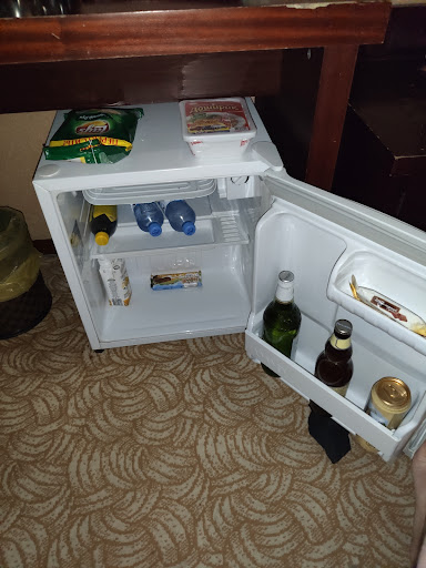 First of all restaurant is not working because they have "sanitary day". Shouldn't every day be sanitary for restaurant? What happens if you have dinner there day before? "Sorry. Bad luck!". Everything is made for Chinese. I mean. Gold colours with purple plus red pictures and shiny turquoise curtains in bathroom. A bit too much for European but I get the specific style. So there is one star. Maintenance must be done. Not like sometimes but regularly. Wallpapers are broken. Everything is missing corners, door has scratches like wolf tried to escape, and closet doesn't open (hope there is nobody inside). And my air-conditioning doesn't heat. Will be cold tonight. What kind of decent hotel leaves condoms at night table? And no free water? I guess sex is in here somewhere. Hope it was not in my bed. Although bed has under linen additional waterproof layer.... Gross. And remote for TV. TV is one with snowy channels (haven't seen snow in TV for years now) and hanging cables. Anyway remote is CHINESE. How in the world should Russian manage it? Bottom line - chose this one only if other hotels are...