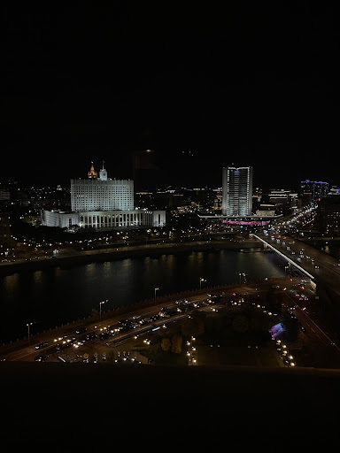 In the future, the government decided to transfer the construction to the Dorogomilovskaya settlement, which was built up with barracks and wooden houses. This was due to the desire to create a high-rise which would dominate the intersection of the Moskva River embankment and a promising major highway, Kutuzov Avenue. The designers took into account not only the location of the roads, a pier for the river fleet was also created near the hotel.[10]