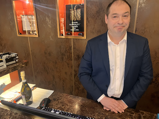 Read moreЯ не была в номере этого чудесного отеля, но абсолютно уверена, что там просто шикарно. Учитываю и внешний вид здания, и внутреннее элегантное убранство. Очень красиво - холл, бар с камином и чудесной мягкой мебелью.. И ресторан, в котором мы собственно и были, просто поразил своей в хорошем смысле помпезностью и красотой. Персонал отеля и самого ресторана просто опережают ваши желания, очень профессинально и приветливо обслуживают гостей, улыбаются и готовы помочь чем угодно. Это приятно. Красивая посуда, красивая подача блюд. Но сами блюда совершенно не впечатлили. Были компанией родственников, отметили в красивом месте День рождения, но лично я как пришла голодная, так и ушла, толком ничего не покушав. Сморреброд с норвежской сельдью - абсолютно невкусная штука. Сельдь жёсткая сухая и пересолена.. В рядовом супермаркете селёдка из ведра вкуснее в разы. Лежит селёдка на совершенно высушенном куске хлеба с кусками варёной свёклы. Разобрала этот бутерброд на запчасти и отодвинула от себя тарелку - всё грубо и невкусно. Рибай стейк..очень некачественная говядина. Для такой стоимости она обязана таять во рту. А я половину куска устала есть - из каждого отрезанного кусочка, я выплюнула какую-то нежующуюся деталь, простите. И другую половину просто отодвинула за невозможностью есть . Салат с уткой и грушей .. - была уверена, что там будет утиная грудка гриль, но утка была подана в качестве некого тонко нарезанного вяленого "хамона" - для сравнения и понимания - впечатление, что просто пожевала травы. Вкусно только то, что трудно испортить. Это наисвежайшие крупные устрицы в изумительно красивом блюде. Креветки королевские в кляре и в остреньком соусе васаби. Роллы тоже очень достойные. Ну и хороший алкоголь безусловно. Моё мнение имеет право быть. Я считаю, что приготовленные блюда совершенно не тянут на заявленную стоимость. А стоимость впечатляет, особенно после того, как попробуешь блюдо на вкус. Увы.. Это конечно же вопрос к кухне. Впечатления хорошие только от обстановки, антуража и обслуживания. Еда -...