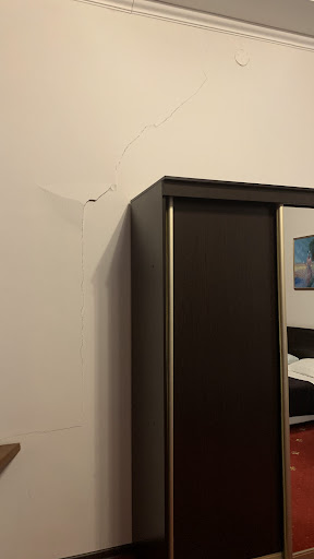 Read moreПри бронировании на фото есть балкон,по факту его нет.Администратор сказала,что из 8 номеров данной категории балкон только в 4 есть.Отель находится у оживленной магистрали.Постоянный шум и днём и ночью.Отдалён от основных достопримечательностей.Рядом есть остановка общественного транспорта,но ходит 2 автобуса до центра ну с очень большим интервалом движения.Долго ждать приходится. На завтрак подают одно и тоже каждый день плюс не свежее.Остатки шарлотки,несколько кусочков,на следующий день подают.Блинам дня 3.Сок из магазина Лента самый дешевый их собственной торговой марки.На кружке женская губная помада.В холле капало с потолка,сказали администратору,поставили ведро,которое так и простояло 3 дня до нашего отъезда.В номере тоже жёлтые потёки на потолке,обои местами вздутые,отошли вместе со штукатуркой.В наше отсутствие принесли на смену полотенца,которые были влажными,застиранные,далеко не белого цвета и местами в пятнах каких-то.В номере две односпальные кровати,которые соединили и между ними дыра.Два односпальных одеяла.Под кроватями слой пыли.В шкафу пыль.Прилагаю фото,вид из номера комфорт,5 этаж. Отель предлагает губку для обуви,но до нас ей кто-то уже...