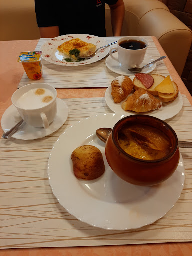 Read moreОтель в целом понравился, жили вчетвером в трехкомнатном номере. Интерьеры в классическом стиле, оформление приятное, мебель в удовлетворительном состоянии, спальные принадлежности как новые. На каждого гостя выдаётся комплект из 3 полотенец (что соответствует звёздности отеля) + банный халат. Также в санузле для каждого были одноразовые тапочки, комплект для чистки зубов, гель для душа и шампунь. Из удобств: в санузле биде, ванна с исправно работающим джакузи, хороший фен; в комнатах по столику, 2 телевизора, кондиционер, прикроватные тумбочки, в гостиной диван и торшер, холодильник, телефон, чайник, набор посуды, чайные принадлежности. Отдельно стоит отметить наличие большого трехсекционного шкафа-купе, в который легко умещается верхняя и прочая одежда (много вешалок) и большой дорожный чемодан. В шкафу также имеется сейф.||||Теперь о впечатлениях. Состояние номера хорошее, позволяет получать удовольствие от отдыха. Горячая вода поступает без перебоев. Кухня довольно скромная, но все, что мы заказывали было вкусно и из качественных продуктов. Завтрак, включённый в стоимость номера, очень плотный. Есть шведский стол с нарезкой, яйцами, запеканкой, очень вкусными блинами (респект повару Дмитрию), соусами, кофе-машиной. Помимо этого каждому гостю заранее предлагается выбрать персональное блюдо (омлет, яичница, каши, сырники), так что уйти голодным сложно. На обед и ужин есть комплексный вариант питания с возможностью доставки в номер. Спа представляет собой бассейн, сауну и просторный зал со столом и диваном, посещение сауны индивидуальное по записи.||||О недостатках. Сантехника не столько уставшая, сколько требует регулярного обслуживания (местами разболтанная), бассейн тоже нужно регулярно просушивать, и с этим есть проблемы. Хотелось бы, чтобы персонал был чуть более общительным и больше рассказывал об услугах отеля. В просторном санузле зимой (а может и летом) довольно прохладно, теплый пол был бы очень кстати. Телевизоры в номере просятся на замену.||||Итог. Отдых в отеле принес массу положительных эмоций, негатива не было, качество питания очень понравилось. Вообще, к клиентам относятся очень по-человечески. Указанные минусы не снизили качество нашего отдыха и скомпенсированы многими позитивными мелочами, поэтому ставлю 5. Также не стоит забывать о соотношении цена-качество, здесь оно прекрасно...