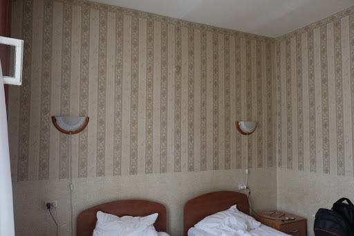 We were staying at the hotel for 4 nights at the first floor. When we entered the hotel we tought that this is a good place to stay. When we got to the room, we were in shock. Even when my husband and I were walking down the hallway it was terrible. Old carpets, wires hanging down the wall, weird smell, dirty walls. We got to our room and saw that you couldn't just shut the door, you have to put the key and lock it. When we saw the bathroom I was in even bigger shock. It was so old, moldy, smelly, the tiles were different, on some parts of the wall the tiles were not even there or they were lifted because of the water or humidity, you have to share one tap between the sink and the bathtub. The room itself was ok, clean, but old furniture, the beds were very uncomfortable, old mattresses and you could feel the bed springs, the pillows were terrible, so old that the stuffing doesn't exist anymore. The breakfast was good, with good offer of food, loved the little traditonal russian "cheese breads", missing the honey (because for me it's a standard food for breakfast). Amazing lunch and dinner at the hotel restaurant (chicken soup, quesadillas, burgers, chicken with potato, carbonara etc) and the waiter is very good at his job. The bodyguards at the hotel are very nice and polite. The waiter working at the hotel cafe is very rude and the receptionists are ok but not very helpful and when we came to hotel we felt as if we were not welcome, they didn't smile once. Also the hotel is very far away from the city centre and in a very quiet strange neighborhood. For me this hotel isn't a three star hotel. For me it's poor, but gave it a rating average just because of the food and the...
