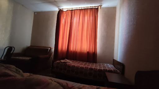 "+": кровати не скрипят. Выспались. Насекомых нет. Есть горячая вода. "-" : вывеска не подсвечивается, указателя нет, поэтому ночью долго искали. Мебель старая и разбитая (у нас стол). Клеенка на нем грязная. Общий туалет и душ на этаже, соответственно очередь. За такие условия цена проживания непомерно завышена (700р.с человека). Остановились здесь только потому, что в других местах...