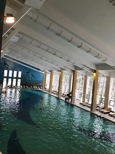 Сначала о плюсах: Два бассейна, один пятидесятиметровый крытый, второй - небольшой (метров 20) открытый всепогодный. У каждого бассейна есть сауны, бани (в крытом много разных). Открытый басссейн зимой - супер!