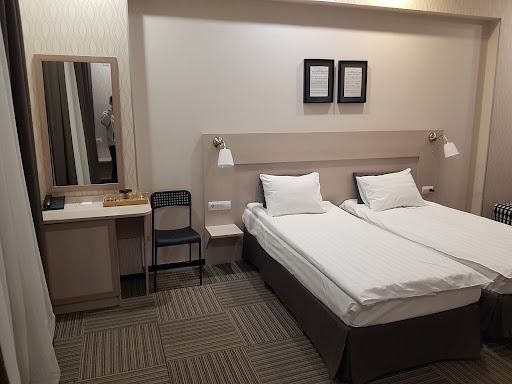 Read morePROs:||1. PROXIMITY. - Interesting architectural sites are walking distance from this hotel. The Hermitage is about two blocks from here. There are also many restaurants nearby.||2. LOCATION is AWAY from the MAIN STREET - so no noise pollution from cars. ||3. BLACK OUT CURTAINS - room can be totally dark even when sun is up so we had longer time to snooze. ||4. HOT SHOWER works fast and its temperature doesn't fluctuate compared to other hotels.||5. HOT WATER DISPENSER and IRON + BOARD is available in the main hallway. ||6. HELPFUL STAFF - Artym and Ainur were helpful in assisting us with directions and taxi requests. ||7. WIFI works okay.||||CONs:||1. NO LIFT. When we checked in, we were assigned on the 4/Floor, we carried and bulky suitcases up. The receptionist offered to help though by offering a twin room on the second floor, but we declined due to limited space for our suitcases.||Imagine the inconvenience of coming back from a long day of exploring the city and then climbing up four flights of stairs to rest. ||2. WALLS SEEM PAPER THIN! We can clearly hear other people talking in the other room. If we can understand what they are talking, it can be bothersome. ||3. BASIC AMENITY in the toilet. ||4. NO BIDET. ||5. Narrow common/waiting area.||6. Signage to the hotel when looking for it can be...