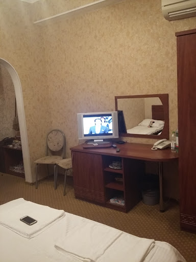 Read moreПри заселении встретила милая девушка, быстро оформила, не пожалела времени объяснить особенности проживания. При оплате наличными предлагается скидка 3%. Здание в шесть этажей, есть лифт (на второй этаж не ходит). На шестом этаже - обзорная площадка, можно посидеть на креслах-мешках. В номере "Стандарт" чисто и аккуратно, по четыре полотенца на каждого, имеются телевизор с федеральными каналами, небольшой холодильник, кондиционер, столик, два стула. Есть посуда - две тарелки, два бокала, две чайные ложки, два фужера, консервный нож со штопором. Вода холодная и горячая - в кулерах на этажах (кулеры без сменных емкостей-бутылок, вероятно, подключены к водопроводу). В небольшой туалетной комнате - мыло, гель, шампунь в настенных дозаторах, горячий полотенцесушитель (что важно, так как при повышенной влажности на улице все плохо сохнет), душ за занавеской вполне комфортный и по размерам и по состоянию сантехники. Балкон выходит в пространство между двумя зданиями, поэтому плохо подходит для любования окружением, но зато довольно просторный, можно посидеть на улице. На балконе - вместительная сушилка для белья с достаточным количеством прищепок. Приветливые уборщицы на этажах. Завтрак предлагается в столовой, которая расположена на первом этаже. При заселении выдают талончики на каждого проживающего на все дни разом, завтрак с 8 до 10 часов. Наверное, идеальным можно назвать расположение отеля: довольно доступно все - море, торговые точки ("Пятерочка" в 5 минутах ходьбы), общепит, стадионы, парки, аэропорт, общественный транспорт. Основная проблема отеля - часть персонала, с которым приходится сталкиваться ежедневно. На их лицах - в лучшем случае, безразличие, чаще - какая-то невысказанная претензия, осуждение. Для них допустимо выражение "читайте, все написано". Хуже всего - работники столовой, которые, кажется, были бы счастливы вообще не видеть этих чревоугодников. Завтрак именуется "шведским столом". Но приходя на завтрак, вы обнаруживаете, что надо взять поднос, встать на раздачу и набрать ваш завтрак сразу. При этом если захотите взять что-то одно, но побольше, услышите от тетки за прилавком: "Больше трех помидорок не даем!". Надо сказать, что качество большинства блюд неплохое и выбор есть. Но все горячее к моменту завтрака уже холодное. Тетушки, вы же знаете это, почему же не предложите сразу разогреть, или подойти попозже и взять теплое, чтобы оно не остыло совсем на столе?! Все дни за соседними столами слышали недовольство гостей, видели выбрасываемые полные тарелки, схваченные в сутолоке на линии раздачи. "Шведский стол" предполагает возможность брать что, сколько и когда хочу, возможность попробовать блюдо, прежде чем набирать его, возможность поесть с удовольствием. Но преодолеть ужас о того, что съедят лишнее, работники не в состоянии. Из недостатков питания отметим (1) из мясного - каждый день только сосиски, (2) ужасно разбавленный то ли морс, то ли сок (честнее и экономнее (!) было бы налить чистой воды), (3) гадкий кофе в разовых пакетиках. От персонала столовой не сильно отстают ресепшн-работники (извините, девушка, что так приветливо встретила, это не о Вас). Предпочитают находиться где-то на улице с сигаретой. Манера общения - что-нибудь буркнуть в ответ гостю, не отвлекаясь от телефона или болтовни. Из других недостатков нашего номера - о