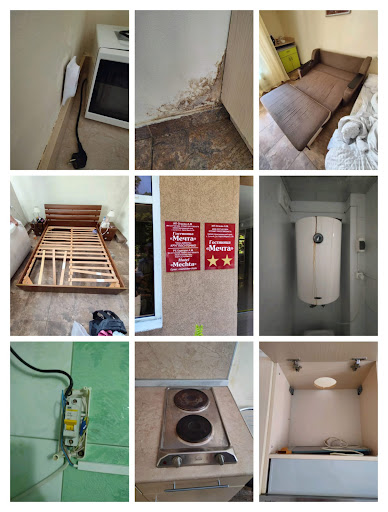 В номере были ужасные условия: Ржавое дно душа со шторкой вместо стенок, сантехника сломана, крышка унитаза не работает, дыры в стенах, из которых торчали пучки труб, железные стулья и комната без кондиционера в жару 30 градусов на солнечной стороне! По вечерам было не возможно открыть окно, тк запахи и дым от готовящейся уличной еды стоял у нас в номере целый день и ночь, да и музыка орущего, пьяного караоке и псевдо певцов по вечерам, не давало нам открыть окна и спать с запахом моря!