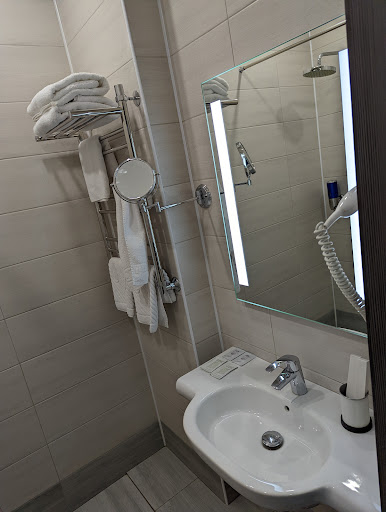 Really nice hotel! Very friendly & helpful staff (they were so nice as to organize check-in 1 hour earlier) and cozy rooms - modern equipment & design (the walls are not just white, there is a smart pattern on them!), super-clean bed cloth & featuring extended set of towels, bath robe & slippers! Great balance between price & quality! As for surroundings, did not have time to explore anything seriously, but canteen downstairs didn't seem very very exquisite in terms of food, though the...