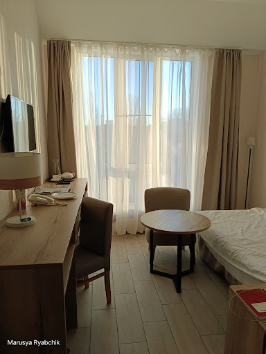 Первое что бросается в глаза так это попытка самостоятельно обустроить номера сэкономив на дизайнере. Просторные номера, тот же сан узел в котором и ванна и душевая кабинка со стеклянными заставками, но неграмотно выполнен сток из-за чего постоянно стоит запах канализации, плохо уходит вода в душе. С установленной качественно сантехникой поставили обычное дешевое пластиковое черное ведро с натянутым на него черным пакетом. Бра вплотную к картине. ||Больше всего запомнился вечер, когда на этаж выше, в ресторане, праздновали какое-то мероприятие, музыка играла так громко, что ходуном ходили все предметы в комнате. И всё это безобразие длилось до 12 ночи, прекратилось лишь после вмешательства постояльцев, а затем начали перетаскивать мебель. ||В качестве комплимента в номере стояла бутылка белого вина, лично моё мнение, что лучше не предлагать комплимент вообще нежели предлагать такого...