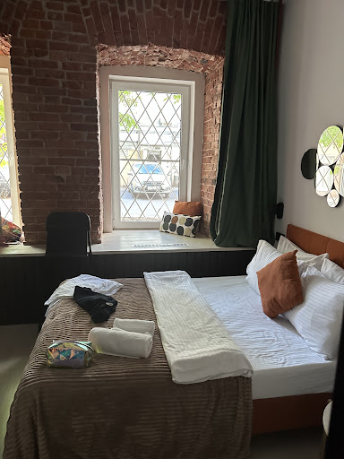нет полочек под одежду! Вот буквально положить свои вещи и одежду Вам будет некуда! На входе есть вешалка под верхнюю , уличную одежду и все! Ну что нельзя было сделать хоть какие нибудь полочки. Сделайте открытую угловую полочку, она стоит копейки, зато постояльцам будет удобно, можно будет положить хоть какие то личные вещи на время! Итак в номере тесно, не повернуться, дак еще и вещи кругом лежат. Получается кавардак поневоле....