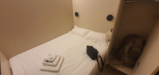 Останавливались в период с 28.10.23 по 29.10.23. Впечатления, на этот раз, негативные. "Повезло", что именно в это время там остановилась группа детей(видимо спортивная команда). У нас была не капсула, а номер, сквозь стены которого было очень слышно то, как эти дети баловались, шумели, громко включали звук на телефонах, тем самым не давали отдохнуть, хотя политика хостела такова, что в спальной зоне шуметь строго запрещено. В первый раз мы сами попросили данных детей вести себя тихо, время уже было позднее, но наша просьба прошла мимо их ушей. Тогда мы отправились на ресепшн, дабы обсудить этот вопрос с администратором отеля, которого не было там и кто там вообще администратор, разобрать сложно, ни у кого нет бейджей да и никто не представился администратором и не сказал к кому обращаться с какими-либо вопросами. Тогда, мы решили узнать у девушки за стойкой в кафе, к кому же нам обратиться, она спросила "а что случилось?", объяснив ей ситуацию, она проследовала с нами в спальную зону, и удивилась, как это мы в комнате, а не капсуле слышим все эти крики. А как их не слышать, когда они прям под дверью в комнату и за стеной в пару см толщиной. Она заверила, что передаст это администратору, НО, к нам так никто и не обратился, чтобы как-то помочь. А тренерам на своих чад явно было все равно и следить за их дисциплиной никто и не пытался. К 12 часам все утихло, НО! В 7 утра наш сон был прерван очередной волной визгов и беготни. На замечание реакции не последовало, а тренер детей, смею предположить, сделал вид, что ничего не слышит, хотя был в это время в спальном блоке. В 9 утра все повторилось заново, просьбы вести себя тише снова были в воздух и мы решили пойти подальше от этой вакханалии и взбодриться кофе и принесенной с вечера пиццей, которую оставили в общем холодильнике с еще одним нашим пакетом. И ТУТ ВИШЕНКА НА ТОРТЕ И ПРОСТО КРАЙ ВСЕГО ПРОИСХОДЯЩЕГО ЗА СУТКИ В ДАННОМ МЕСТЕ!!! Открыв холодильник, мы не обнаружили там коробки с пиццей, а только пакет с выпечкой. На том месте, где мы оставили свои продукты лежал другой большой пакет. Естественно, решили, что нужно обратиться к администратору, которая сказала, что проверит камеры видео наблюдения. Но уже насторожило то, что ни номера комнаты, ни имени к кому обратиться в случае решения данной ситуации не спросили. Вообще, девушка администратор показалась очень аморфной, без желания чем-то помочь. Собственно, она ничем и не помогла! Мы и так были под впечатлением от соседства с гиперактивными детьми, так еще и это, когда сдавали ключ от комнаты, тот же самый администратор не поинтересовалась удовлетворены ли мы проживанием, она вообще в принципе уже забыла, что мы к ней час назад подходили с просьбой решить ситуацию с пропажей. Я не услышал никаких слов прощания или в целом уважения ко мне, как к гостю. Стоит отметить, что в хостеле мы были крайний раз в августе, и он был переполнен, НО при этом тишина была и можно было отдохнуть, мы даже. живя в капсуле слышали минимум звуков от других гостей. И помнятся слова того же администратора (не знаю имени, она не представилась), что шум грозит выселением, но видимо на кучку детей и их тренеров, доставляющих неудобства другим, закрыли глаза, что очень неприятно! Хотелось бы от вашего хостела получать отдых и комфорт, а вышло все иначе. Надеюсь руководство это прочитает и принимает на ра