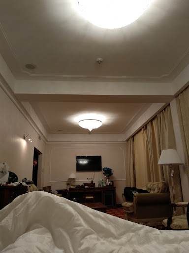 Read moreЗаселились на 3 ночи в люкс (примерно 30 000 рублей без завтрака), погуляли по городу и побывали в разных ресторанах, очень удобное расположение отеля. В номере множество осветительных приборов и 2 туалета, один из которых совмещён с ванной и душем… Гигантская кровать в номере, на которой могут уместиться 3-5 человек. Письменный стол, электрический чайник, чашки, стаканы и 2 бутылки воды 0.5, кофемашина с капсулами (за каждую нужно заплатить 70 рублей), телевизор и 3 больших зеркала, 1 в полный рост. Если днём закрыть все занавески то комнату поглощает мрак, в прямом смысле слова. 11 полотенец было на 2 человека: 2 для головы, 2 для тела, 3 для ног и 4 для лица и рук. 2 халата и 2 пары тапочек, туалетная бумага 3 рулона, 2 мини зубные пасты и 2 щетки средней жёсткости, 2 шапочки для ванны, шампунь и гель для душа, мыло для рук, фен висит на стене. Горячая вода во всех источниках начинает идти через 5-7 секунд холодной. Телевизор работает и мы нашли каналы на английском и испанском языках и вроде французском. Ночью было жарко, не могли разобраться как пользоваться кондиционером, открыли окна и один раз проснулись от стонов девушки на улице... Не знаю что там происходило... Утром сходили позавтракать в ресторан, мы не оплачивали сразу а оплатили просто на входе (750 рублей с человека) обычный шведский стол, не самые дешёвые продукты но и не середина, йогурт "нежный" проще купить в магазине… ребята быстро забирали пустые тарелки поэтому сервис понравился, также нашли арбуз и дыню (просто нигде не подают в кафе и ресторанах, а здесь вдруг счастье) мы сели в самый угол, нам никто не мешал кроме "немного" странной психоделической музыки. Людей в ресторане было немного к 10 часам, поэтому не могу точно сказать тесно там или нет в 8. У них нет трубочек, я пью сок только через трубочку так как не люблю когда сахар на зубах остаётся. Сходили погуляли купили цветы, с просьбы принести вазу в комнату девушка через 2-3 минуты (как и было сказано) принесла вазу, но очень длинные розы 21 штука еле влезли в нее. Мы купили шарик, надули и он упал на пол, далее шок... Я увидела на нём кучу волос причём чёрные женские и мужские. У меня русые и крашеные в яркий цвет (не скажу какой), а мой жених блондин (во всех местах). Выкинуть пришлось шарик, так как меня начало тошнить. Услугами химчистки не пользовались, но стоимость конечно низкая, кстати утюг и доска для глажки всегда стоит в коридоре. Вроде фитнес бесплатный а спа 5000 рублей за 2-3 часа (точно не помню) но мы не рискнули пробовать. Но в целом всё понравилось, правда людей маловато, было ощущение, что прошёл апокалипсис, к вечеру люди вылезали к креслам и диванам на 0 (1) этаже. Комната шикарная, условия проживания тоже,...
