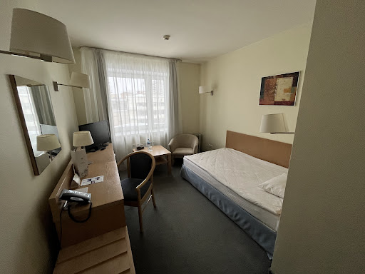 Read moreПребывание в отеле началось сразу наперекосяк нас заселили в номер отличный от забронированного (в полтора раза меньше с душевой кабиной). Почему не заселили сразу в забронированный номер загадка т. к. номера в наличии были.|- Что касается номера: номера уставшие, ремонта давно не видевшие, кресла полу-рваные со следами каких то разводов, в бронировании была указана двуспальная кровать, по факту 2 одинарные сдвинутые т.е. посередине образуется провал.| Останавливались на 4 ночи, искать другой отель уже сил не было, да и ехали далеко поэтому хотелось поскорей привести себя в порядок и идти смотреть город. |На третий день возвращаясь после поездки загород выяснилось что машины нет в списках на парковку что удивительно, так же ключи в номер не активны пришлось возвращаться на ресепшен просить их активировать( ключи не могли сами размагнитится т.к. лежали отдельно от смартфонов техники или других карт);|уборка за время пребывания делалась один раз, когда убрали использованные полотенца с пола и то есть ощущение что их просто сложили и положили на полку (полотенца видимо от срока использования уже желтоватые, потрепаные, нитки торчат, местами пятнышки); |вода бутилированная является комплиментом отеля поэтому дается только при заезде, как позже выяснилось видимо так же чай|(2 пакетика черного и 2 зеленого), туалетная бумага, так как ничего из этого не пополнялось т к и уборки то не было. После того как подошли на ресепшен попросить нам великодушно положили еще 1 пакетик черного и 1 пакетик зеленого чая. Поздно вечером несколько раз звонил стационарный телефон в номере, как только вставали чтобы ответить, звонки прекращались. |Если у вас возникают вопросы обращайтесь на ресепшен , серьезно с таким количеством проблем проще уже не селиться в отель или уже переезжать жить на ресепшен. |Завтраки однотипные, шведский стол но изо дня в день меняется только 1 гарнир или горячее, на третий день приедается. |После описания проблем при выезде нам предложили кофе и десерт как комплимент. Это уже было вишенкой на торте сюра всего происходящего. За свои деньги абсолютно не стоит. При заселении нам несколько раз сказали , что являются трехзвездочным отелем и четко соблюдают стандарты, получается не соблюдают, все стандарты дальше...
